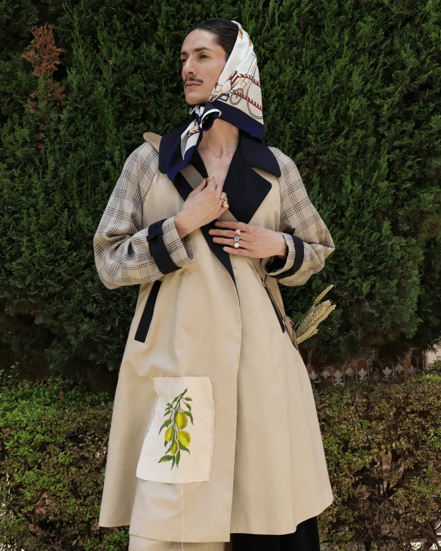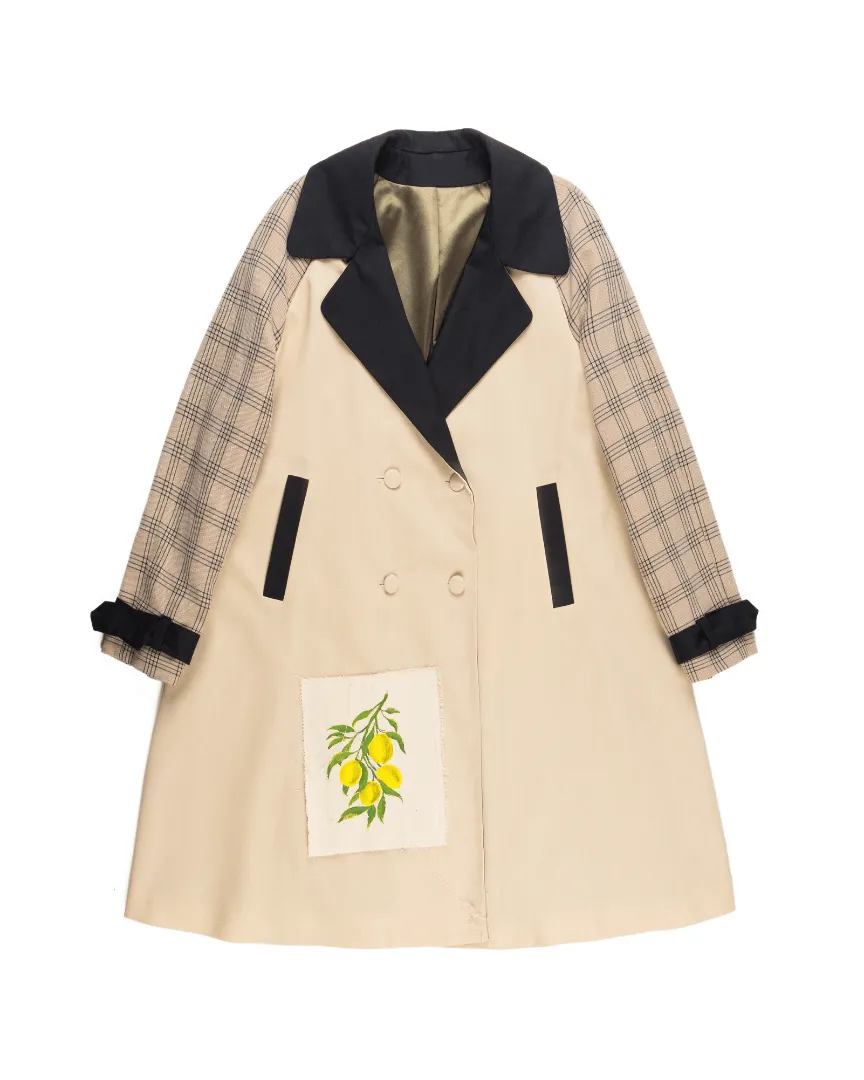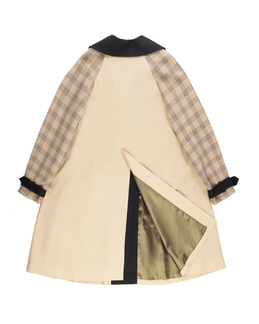 Gabardina confeccionada en tejidos de algodón de corte acampanada, manga raglán y abertura posterior.